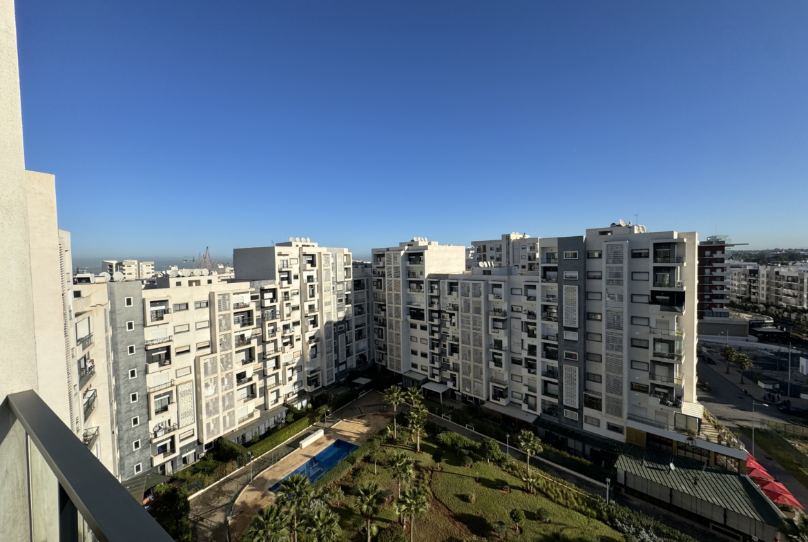 Maison Capital vous propose à la vente un appartement situé au 9ᵉ et dernier étage de la résidence Prestigia à Hay Riad, bénéficiant d’une vue dégagée et sans vis-à-vis.
